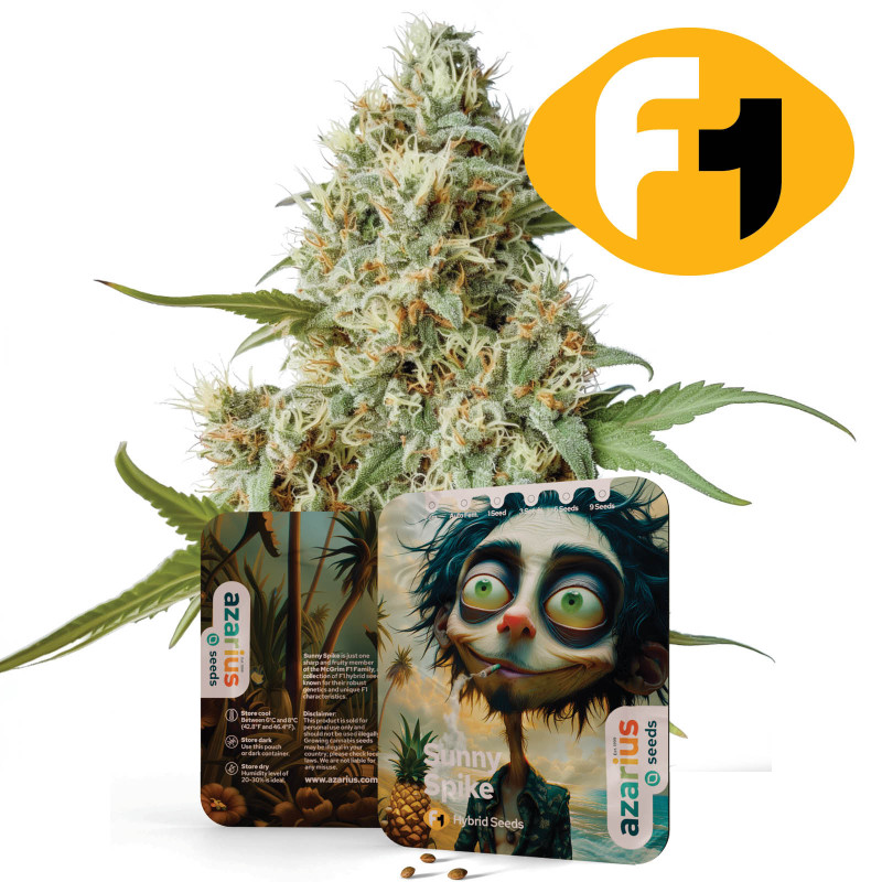 The Sunny Spike strain is a vibrant F1 Hybrid, expertly developed from the strong genetics of Pineapple Express and Lemon Kush. This strain showcases the vigor and robustness typical of F1 hybrids, offering users an uplifting and relaxing experience with a tropical, citrusy flavor profile complemented by sweet, earthy undertones. Sunny Spike captures the bright, energetic essence of its lineage, making it an ideal choice for those who enjoy a refreshing and euphoric cannabis experience.