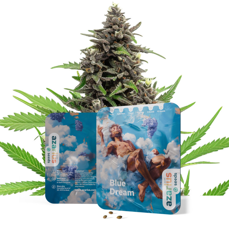 Blue Dream, a balanced hybrid with origins in California, offers sweet berry bliss with an uplifting, hazy high and divine fruity flavours. Suitable for indoor/outdoor growth, it flowers in 9–10 weeks and yields up to 700g/plant.