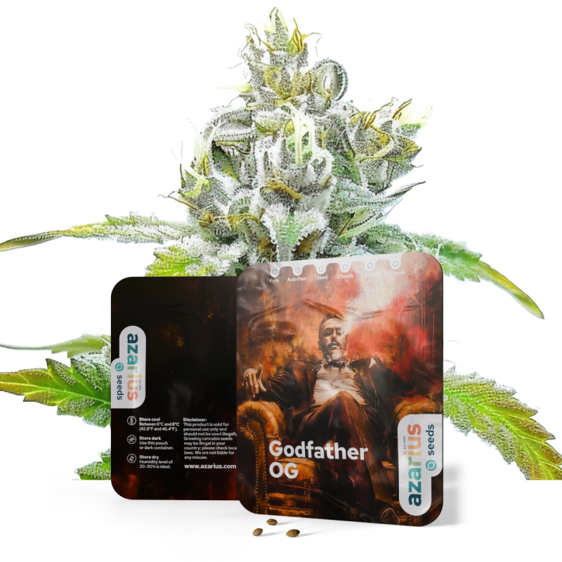 Godfather OG seeds produce a mostly indica hybrid with fruity and woody flavours and a strong body high. With THC levels up to 33%, this strain offers potent, relaxing effects. Ideal for indoor and outdoor cultivation, it boasts rich resin production and a flowering time of 9–10 weeks.