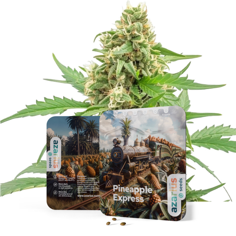 Pineapple Express (#2), a sativa-dominant hybrid from Skunk #1 x (Hawaiian Skunk x Big Bud), offers fruity and lemon flavors with moderate potency (up to 25%). It delivers creative, energetic effects and moderate relaxation. Ideal for both indoor and outdoor cultivation, it provides high yields.